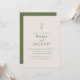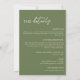 Un faire-part de mariage tout-en-un minimaliste et moderne vert olive et gris, conçu avec des lettres simples et de script, et un élément floral. Customisez avec vos informations de faire-part de mariage sur l'avant, et les informations de logement et de réception mariage sur l'arrière.