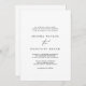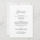 Ce faire-part de mariage noir délicat à l'avant et à l'arrière est parfait pour un mariage moderne. Le design minimaliste romantique présente une belle et élégante typographie noire sur un arrière - plan blanc au look épuré et sobre. Enregistrez du papier en incluant les détails au verso du faire-part de mariage plutôt que sur une carte de boîtier séparée. Inclure également les informations RSVP si votre invité répondra par voie électronique (facultatif).