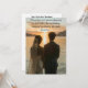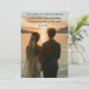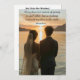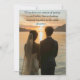 Une faire-part de mariage traditionnelle générée par l'IA d'une dame réaliste et de son gentleman regardant l'horizon tard dans la journée (probablement après leur mariage), avec une citation très romantique sur le véritable amour d'Antoine de Saint Exupéry.