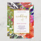 Ces invitations de mariage colorées sont accompagnées d'un arrière - plan feuille et de fleurs tropicales brillantes, avec une typographie à l'apparence d'or imitation. Nous avons utilisé l'art de www.createthecut.com.
