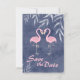 Jolis Flamants Roses sur un Fond de Plage Tropicale Bleu Foncé Grunge Enregistrer les Faire-Part de Mariage.