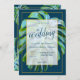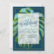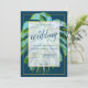 Invitation Mariage Tropical Feuille Monstera bleu foncé or