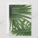 Annoncez votre grand jour avec cette élégante carte Save the Date tropicale. Avec des feuilles de palmier et de monstera luxuriantes et des accents de faux léopard, ce design est parfait pour un mariage à destination ou un thème botanique moderne. Personnalisez facilement avec vos noms, date et lieu pour le rendre vraiment vôtre.