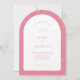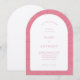Simple et sophistiquée, l'invitation présente un feuille de palmiers. Ce cadre botanique voûté entoure élégamment les noms du couple dans une police moderne.