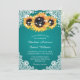 Elégante invitation de mariage turquoise personnalisée parfaite pour votre mariage turquoise rustique inspiré des fleurs de tournesol. Personnalisez facilement cette carte mariage turquoise avec vos détails de mariage.