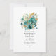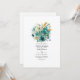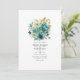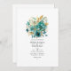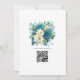 faire-part de mariage fleuri turquoise et doré. Le code QR au verso dirige vers votre site mariage où les gens peuvent en savoir plus et rsvp.