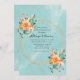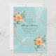 Le design est orné d'imprimés colorés d'éléments floraux dans les tons turquoise et orange sur des feuilles verdoyants et des fleurs de pivoines et de roses. Idéal pour vos célébrations mariages !