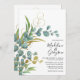 Magnifique et élégante, cette faire-part de mariage de verdure à l'eucalyptus présente des eucalyptus accompagnés de faux dessins au fil de feuille d'or et d'éclaboussures d'or. C'est tout simplement magnifique ! Voir la coordination des articles dans notre boutique, Enchanted Finch.