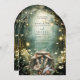 Chemin forestier éthérée de fleurs, champignons et arbres, sont présentés dans ce style magique enchanté de faire-part de mariage verte, avec des lumières brillantes. Commandez en version imprimée, en téléchargement numérique ou les deux. Créez un invitation thématique éthérée pour votre journée spéciale.