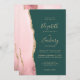 Le bord gauche de cette élégante faire-part de mariage moderne est orné d'une bordure en aquarelle rose vif et recouverte d'une parties scintillant en faux or. Le texte personnalisable combine écriture manuscrite couleur or, cuivre et polices italiques sur un arrière - plan vert émeraude. L'envers est assorti d'un design d'agate en blush et or.