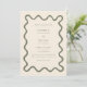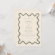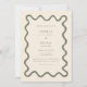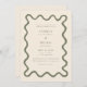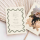 Faire-part de mariage simple et fantaisiste avec une ligne décalée dessinée à la main comme un cadre. Vous pouvez ajouter une photo au dos avec la même ligne ondulée. Couleur vert olive.