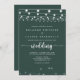 Ce faire-part de mariage rustique à cordes vert est parfait pour un mariage classique. Le design présente de belles lumières à cordes peintes à la main avec de splendides étoiles dans un arrière - plan vert.