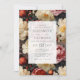 Un élégant design floral d'inspiration vintage avec des pivoines dans les tons rose, blanc, rouge et orange accentué de feuillage vert foncé donne l'arrière - plan pour le texte gris fusain sur un écran rectangulaire blanc. Le design floral est répété sur le dos de la carte.