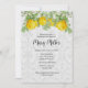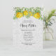 Personnalisez ce modèle d'invitation avec vos informations de baby shower. Cette invitation présente un design élégant et vintage de roses jaunes sur un fond damassé gris clair.
