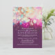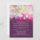 Invitations de mariage violet avec des lampes à cordes glam.