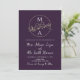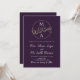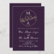 Elégant, moderne, contemporain, minimaliste, simple faire-part de mariage violet avec monogramme unique avec des inséparables de couple dessinés à la main RSVP et code QR à l'arrière.