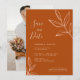 Invitez vos amis et proches à une célébration de mariage virtuelle avec cette élégante et chic invitation à enregistrer la date, caractérisée par une palette de couleurs terre cuite et un design de feuilles esquissées. Personnalisez-la avec vos propres détails de mariage et photo au verso.