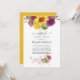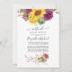 Invitation de mariage virtuel en ligne à distance de style bohème rustique avec tournesols et dahlias dans des teintes de prune bordeaux et couleurs ensoleillées.