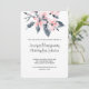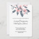Une invitation de mariage virtuel avec une jolie illustration aquarelle de fleurs roses avec des feuilles grises sur une seule tige. Un design botanique élégant et moderne. Fond blanc.