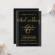 Cette faire-part de mariage virtuelle étonnante présente un arrière - plan noir aux bordures de gris charbon de bois foncé et une typographie manuscrite de script moderne en faux or. Un style simple et contemporain avec une élégance et un texte harmonieux et audacieux.