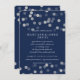 Elégante carte d'invitation Mariage Vow Renouveau avec Faux Silver Foil Parties scintillant Navy Blue Lights ( style bokeh + lumières à cordes + parties scintillant ). Idéal pour les mariages / événements formels.