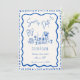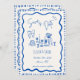 Ce mariage illustré à la mode dessiné à la main, à l'exception de l'invitation à la date, comprend un arc à griffes et des éléments de table. Le design fantaisiste et décalé comprend des caractères manuscrits et des doodles de célébration. Couleur bleu cobalt pour mariage classique mais moderne stationnaire.