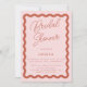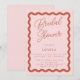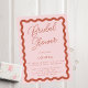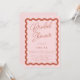 Une invitation de mariage sur le thème rétro fantaisiste avec une bordure ondulée terracotta sur fond blush et un titre manuscrit amusant.