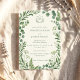 Invitez vos invités avec une élégance intemporelle en utilisant cette invitation de mariage botanique, conçue avec une verdure douce, des feuilles d'eucalyptus et des accents floraux délicats. La palette de vert sauge raffiné et le cadre botanique aéré créent une atmosphère calme et romantique, parfaite pour les couples qui aiment la beauté naturelle et la simplicité moderne.