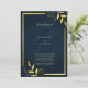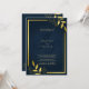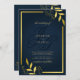 Un monogramme chic avec élégantes invitations à mariage florales feuilles d'or et bleu marine. Cette simple faire-part de mariage de feuillage d'or géométrique est parfaite pour toute fille sophistiquée. Ce design est idéal pour un événement de fête branché et élégant. Customisez cette conception avec votre message et des informations personnalisées. Tous les dessins sont imprimés.