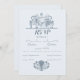 Personnalisable 1700s Baroque Rococo inspiré Wedding RSVP en Dusty Blue. Imaginez si vous pouviez avoir le grand mariage de Louis XVI et Marie Antoinette ? Avec juste un peu d'imagination, vous pouvez !