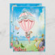 Une représentation douce et amusante de notre fantastique montgolfière recouverte de rose et de rose blanche survolant Versailles à l'arrivée de certaines Marie Antoinette avec des gâteaux pour le thé sur la pelouse.