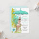 L'invitation de douche de mariage de lingerie présente des fleurs tropicales bleues et sarcelles de l'œuf de merle, un parapluie et une mariée blonde à venir. Disponible avec des cheveux blonds, bruns et roux et une peau claire et foncée.