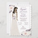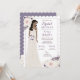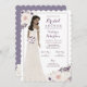 L'invitation à la douche nuptiale de Bougie présente une mariée dans une robe mariage brillante en dentelle et ornée d'anémones aquarelles en violet, lavande et blanc. Plusieurs options sont disponibles pour les cheveux de la mariée et le teint de la peau.