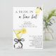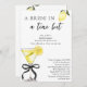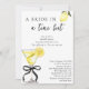 Mariée dans un Tini Bit Lemon Drop Martini nuptiale Shower Invitation - Célébrez la mariée à être dans le style avec cette coquette arc noir citron goutte martini nuptiale invitation à la douche nuptiale avec arrière - plan blanc et couleur noire. Doté d'une illustration aquarelle d'un martini à goutte de citron attaché avec un arc noir aux accents de citron. Le mélange de script élégant et de texte de bloc élégant en font un élégant et chic invitation de douche nuptiale. Personnalisez cette invitation de brunch pour mariées avec vos propres détails d'événement. Parfait pour une douche à thème citron, un brunch à thème martini ou un thème de soirée à thème noir arc-en-ciel. Disponible en téléchargement numérique instantané, envoyez-le par e-mail texte ou par les médias sociaux.