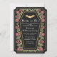 Il est temps de faire un dernier adieu à singledom avec cette Invitation de Bachelorette Rose de Coffin gothique. Ces invitations présentent un design élégant de cercueil sur roses et épines. Parfait pour une fête sombre et glamour ! Commandez maintenant et faites de cette étape inoubliable ! Veuillez noter que l'or sur l'invitation n'est PAS un vrai papier d'aluminium et est imprimé en couleurs plates.
