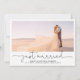 Mariage Réussi Carte d'Invitation pour Réception Seulement avec 4 Photos - Annoncez votre mariage après votre fuite ou cérémonie privée, et invitez vos invités à votre réception, avec cette carte d'invitation tendance et moderne pour célébration après mariage. Avec une photo sur le devant placée derrière une ouverture panoramique, et 3 photos au verso, ce design vous offre de nombreuses options. "just married" est écrit en dessous en typographie manuscrite, pour un look frais et décontracté, ainsi que vos noms, date et lieu. Tous les champs de texte sont entièrement personnalisables - couleur, police, taille et texte peuvent être modifiés pour répondre à vos besoins. Le verso de la carte comporte toutes les informations d'invitation et trois photos de mariage verticales. Copyright Anastasia Surridge, tous droits réservés.