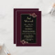 Une élégante invitation de réception de mariage bordeaux, noir et or. Convient aux couples qui ont décidé d'organiser une cérémonie privée mais souhaitent également partager la joie de leurs récentes noces avec leurs amis et proches.