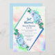 Une invitation élégante de réception de mariage géométrique diamant floral aquarelle bleue.