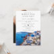 Cette invitation de mariage élégante et aquarelle pour une cérémonie intime à Santorin en Grèce peut être personnalisée avec vos informations en typographie chic et une photo spéciale au verso. Conçue par Thisisnotme©