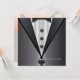 Les mariés élégant smoking noir avec chemise blanche et noeud papillon noir invitation sur le devant et robe de mariée ivoire sans bretelles avec collier de diamants sur le dos. Il s'agit d'un modèle d'invitation de fête ou d'événement polyvalent pour toute fête ou occasion spéciale.