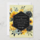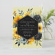 Embrace a dramatic contrast with this stunning artistic design. Luminous marigold sunflowers bloom alongside moody charcoal anemones and soft dusty blue botanicals. The elegant watercolor arrangement creates a sophisticated and modern atmosphere for your special day. This bold composition is perfect for a stylish autumn or late summer union.