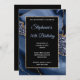 Créez votre propre fêtrement élégant jalon 5x7 anniversaire invitation pour son 30e anniversaire. Parties scintillant décorative en faux or et bleu marine agate géode art numérique graphisme arrière - plan. Il y a une parties scintillant dorée et un rectangle noir superposé pour vos informations invitations. Customisez les styles de police bleu et blanc pâle, la couleur et la taille. La parties scintillant moderne et luxueuse agate sont créés avec de l'aquarelle art numérique et des éléments de style parties scintillant qui s'impriment comme une photo. Fabuleux invitation d'anniversaire de fille pour votre meilleur ami.