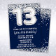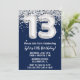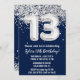 Marine bleu argent et blanc 13e anniversaire invitation 13 anniversaire de fête d'invitation pour un noir blanc argent avec l'écriture de script moderne et des ballons de papier amusant.