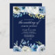 Invitation Marine Bleu Floral Élégant Mariage d'hiver