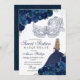 Sweet sixteen Mascarade bleu marine Floral Invitation d'anniversaire