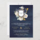 Invitation Marine Bleu Floral QR Code Photo Crest Mariage