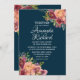 Invitation Marine Bleu Joli Floral Mariage d'automne
