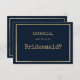 Serez-vous ma demoiselle d'honneur ? Une machine à écrire à thème bleu marine et or vintage avec typographie de police or style rustique mariage Bridesmaid invitations.Est parfait pour toute fille raffinée et sophistiquée ou n'importe qui. Ce design est idéal pour un événement de fête branché et élégant. Customisez ce design avec votre propre message et des informations personnalisées. Tous les dessins sont imprimés.