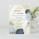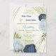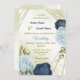 Invitation marine bleu poussiéreux fleurs vert feuille mariag