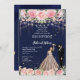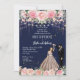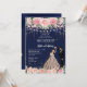 Gold parties scintillant bleu marine fleurs rose mariage invitation modèle instantané téléchargement.